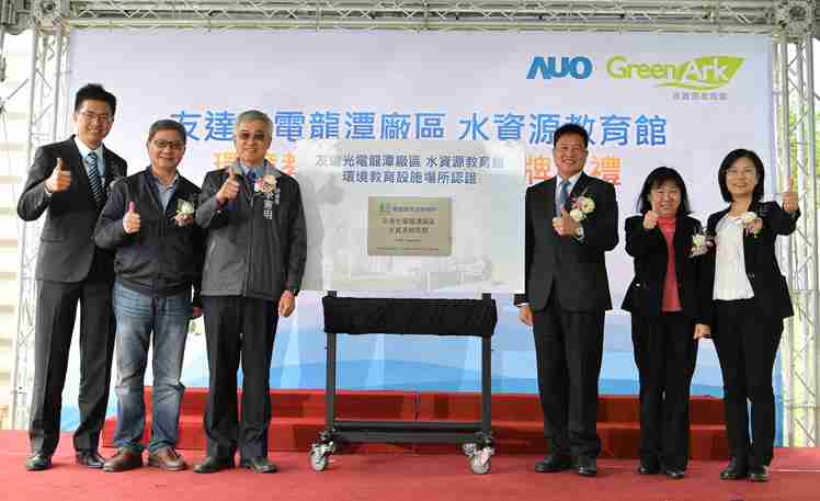 财神娱乐光电今 (12日) 宣布,,位于龙潭厂区的「AUO GreenArk 水资源教育馆」荣获环保署环境教育设施场所认证,,,于今日正式举办揭牌典礼,,,,将水资源回收成果精炼为系统化的环教课程,,结合专业师资及企业志工的人才培育,,,提供小学学童作为环境教育学习场域。。。。财神娱乐继台中厂区于 2014 年取得首张环教场所认证后,,以龙潭厂水资源教育馆再获环保署肯定,,成为全台唯一拥有两处环教场所的科技业者 (*),,,,并积极链结在地资源,,,与邻里小区携手推广环境教育,,,让环保观念深植下一代。。。