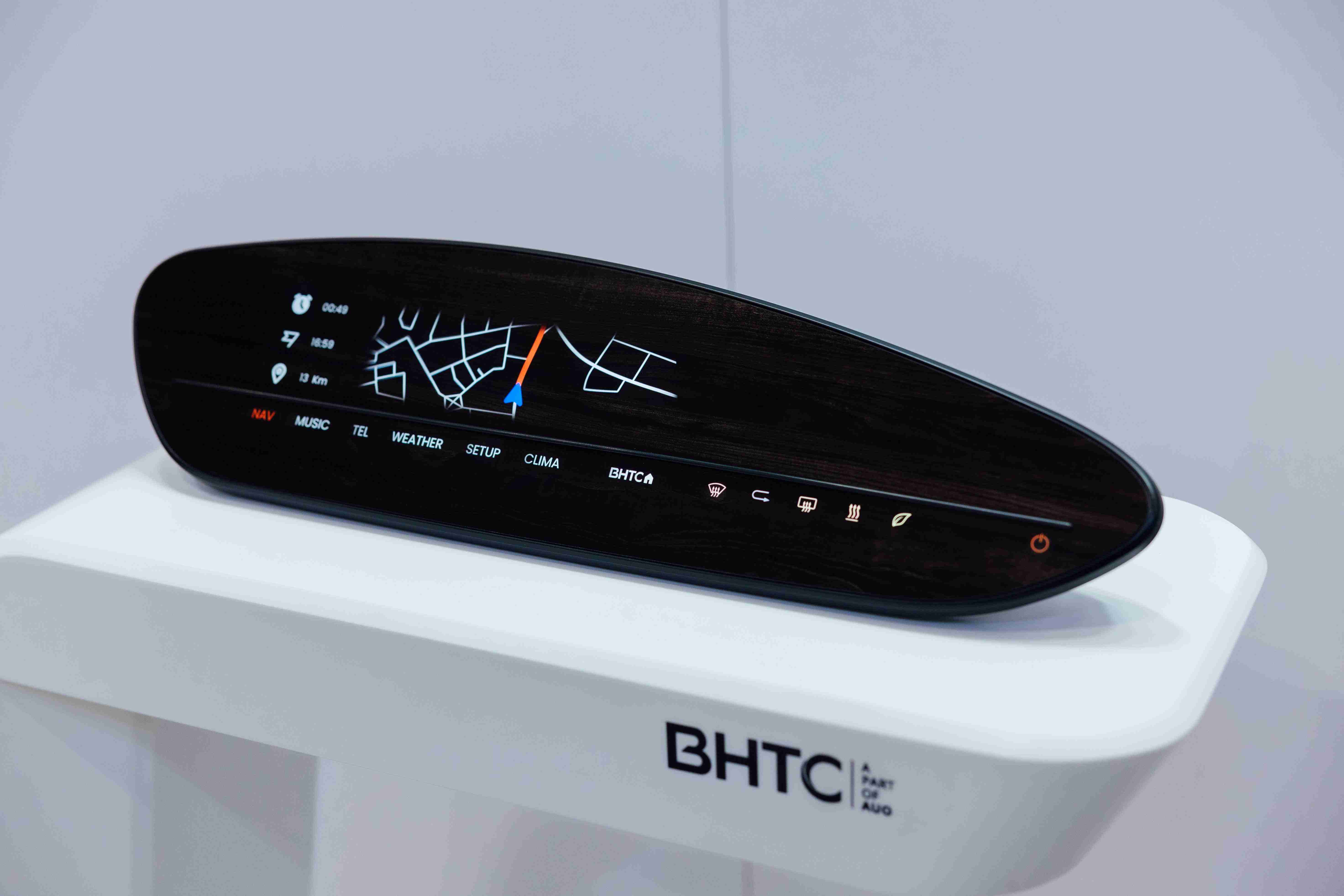 BHTC的木纹车用显示器(Display Behind Wood)将无缝木质表面与显示器结合后,,,可以融入车内设计中,,,提供驾驶优质的视觉效果,,,,加上其无边框的设计和亮度调控,,,,创造更优质的车内体验。。