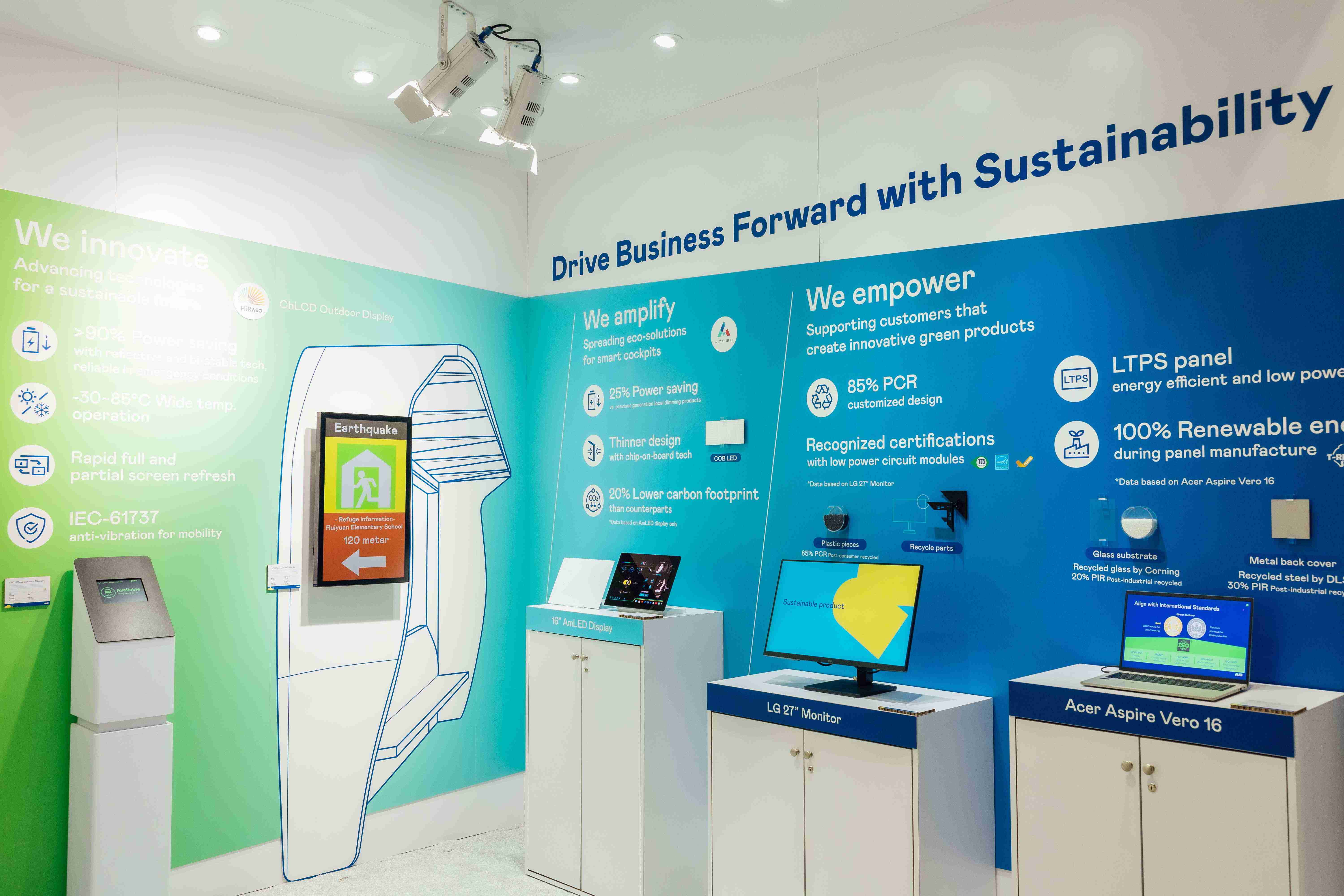 财神娱乐运用创新显示技术HiRaso胆固醇液晶双稳态技术达到显示零耗能、、扩大节能省电的AmLED显示技术应用于车用产品、、以再生的消费后回收(PCR)塑料及全绿电生产之面板,,,,应用于笔电及萤幕,,,,增加绿色价值。。。