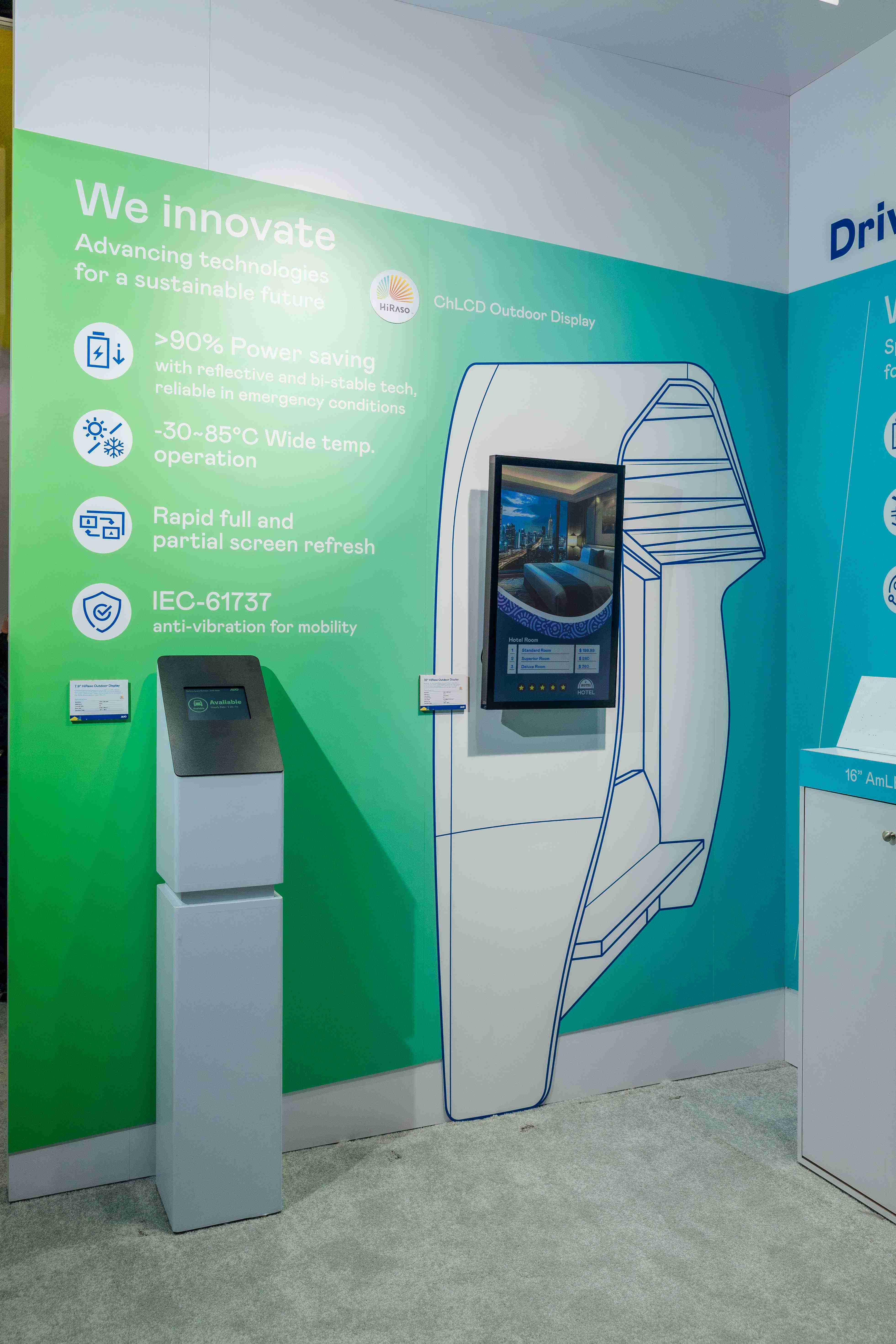 HiRaso胆固醇液晶显示器运用反射环境光线的方式,,,呈现影像显示时零耗能的环保省电诉求,,,光线愈强愈能呈现绝佳的色彩饱和度及显示效果,,,,同时在摄氏-30度至85度间宽温的使用优势,,为户外电子看板的新首选。。。