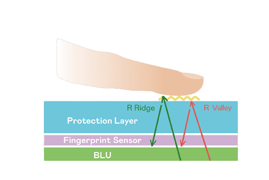 TFT 指纹扫描感测技术利用薄膜电晶体 (TFT) 当作光感测元件,,,藉由非晶硅 (a-Si) 与低温多晶硅(LTPS)既有光电转换特性对不同波段光源进行吸收,,使感测 IC 读取阵列感测元件的光漏电差异,,转换成数位灰阶影像。。。